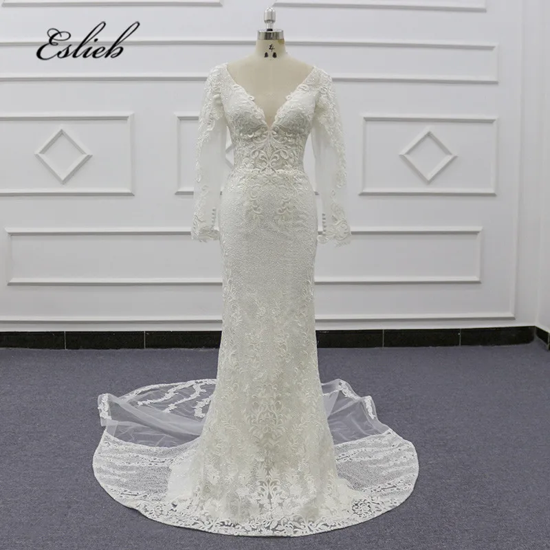 Excellent Eslieb Illusion Mermaid Kant Bruidsjurken 2020 Lange Mouwen Vestido De Noiva Sj155 Discounted