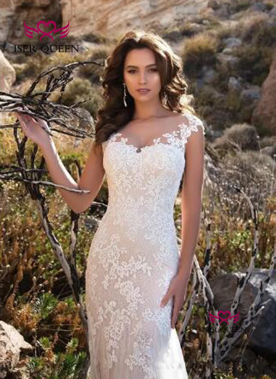 ^*Best Offers Hof Trein Sheer Hals Europa Mermaid Trouwjurken Korte Mouwen Kant Applicaties Illusion Vintage 2019 Trouwjurk W0484