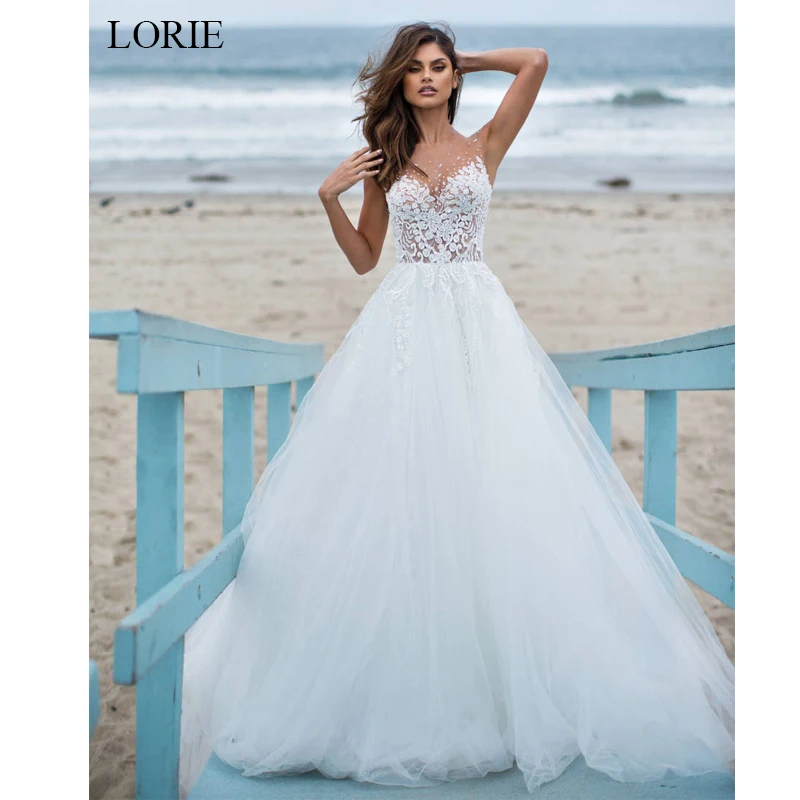 Excellent LORIE Baljurk trouwjurk 2019 Tulle en Kant Bruid jurk Wit Ivoor vestido de noiva zomer Illusion trouwjurk Sale
