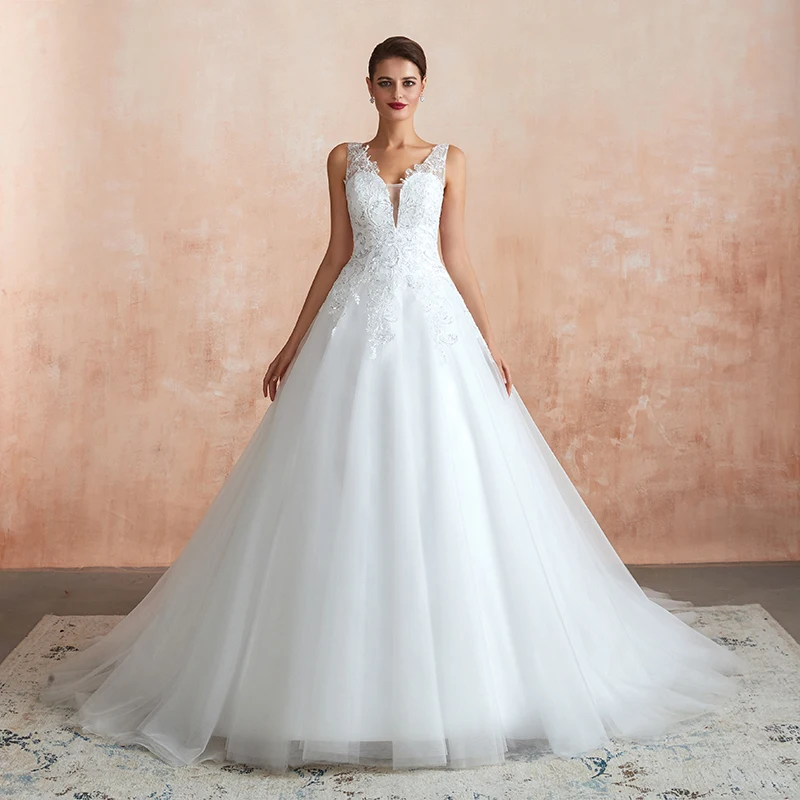 Excellent Vestido De Noiva 2020 Nieuwe Wit/Irovy Backless Applique Lengte Sexy Trouwjurk Hof Trein De Off De Schouder kant Bruiloft Compareand
