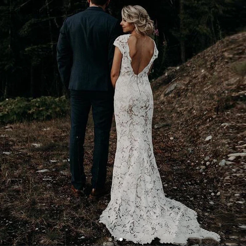 ^Cheap Ivoor Kant Tuin Boho Trouwjurken 2019 Vintage V-hals Land Strand Bruidsjurken Vestidos De Novia Low Back Een lijn Wedding