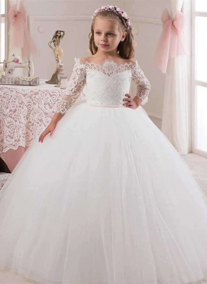 Very Good Vintage Bloem Meisjes Jurk Voor Bruiloften Party Kant Applicaties Lange mouwen Little Kids Heilige Eerste Communie Jurk How Do I Get
