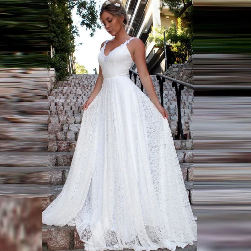 ^Cheap Vintage Kant Strand Trouwjurken 2019 LORIE Vestidos De Casamento Sexy Bridal Dress Backless Plus Size Trouwjurk