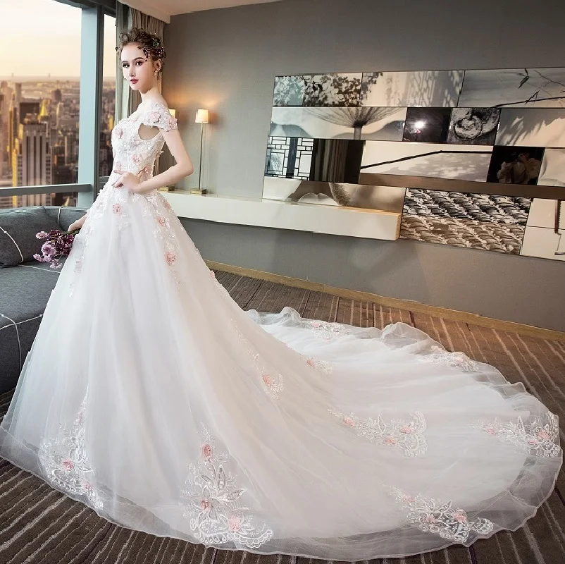 Very Good Vrouwen Luxe Bloemen Borduren Bruidsjurk Lace Up Trouwjurken Vestido De Noiva/Свадебное Платье/Robe De mariee Affordable