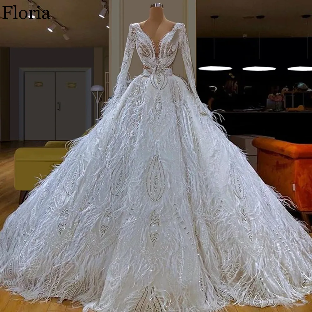 ^Cheap 2020 Wit Gorgeous Celebrity Jurk Lange Formele Veren Avondjurk Prachtige вечернее платье Turkse Couture Dubai Prom Jassen