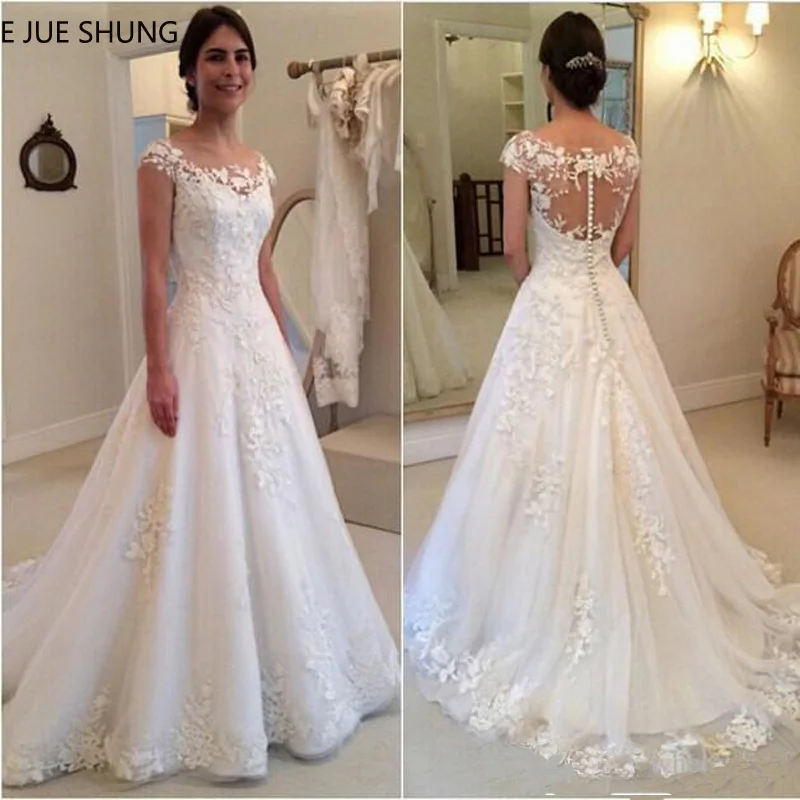 #Special Offers E Jue Shung Wit Vintage Kant Applicaties Trouwjurken 2020 Sheer Terug Kapmouwtjes Goedkope Bruidsjurken Vestidos De Novia
