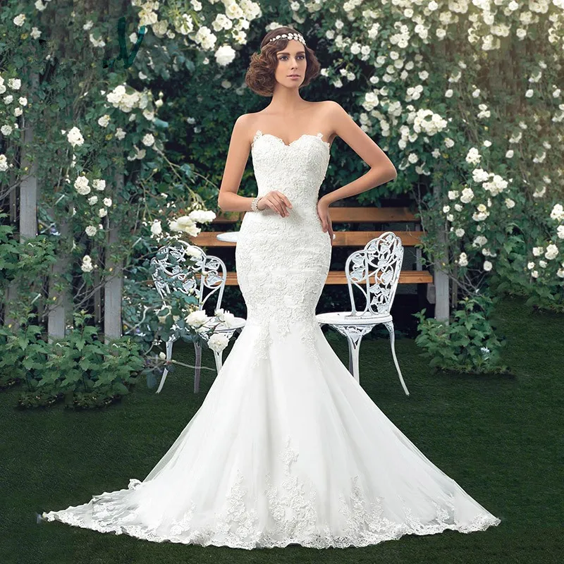 Wonderfull Jurk Charmant Applique Bruidsjurken Mermaid Kant Bruidsjurken Sweetheart Trompet Floor Lengte Vintage Trouwjurk Meisje Is Better Than